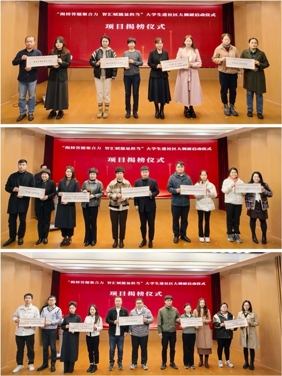 本次“揭榜答题聚合力 智汇赋能显担当”大学生进社区大调研活动,是学院主动融入国家治理现代化大局的一项创新实践。活动采用“征题—发榜—揭榜—解题”的模式,由“1+N”党建共同体合作单位围绕基层治理中的重点难点发布“问题清单”,学院师生则基于自身研究方向与专业特长组队揭榜应战,实现基层“需求侧”与高校“供给侧”的精准对接。