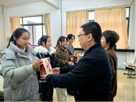 交流结束后,学院领导共同为考研学子发放了精心准备的“考研慰问礼包”。其中既有补充能量的食品,也有实用文具,每一份礼物都承载着学院对学子们的细致关怀。同学们接过礼品,笑容洋溢,纷纷表示感受到了来自学院的温暖。