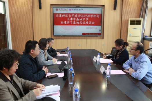 为深化院校合作,搭建优质实践育人平台,切实提升学生专业实践能力与就业竞争力,3月12日上午,政治与行政学院与天津市嘉诚中学共建实习基地交流座谈会顺利开展。天津市嘉诚中学副校长张然、窦琭到访我院交流,学院领导班子成员参加座谈,双方围绕实习基地共建等事宜展开深入研讨并达成合作意向。