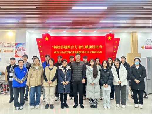 为深入学习贯彻党的二十届四中全会精神,助力基层治理现代化建设,引导学生以青春力量破解社区治理难题,以实际行动践行青年担当。近日,学院“揭榜答题聚合力 智汇赋能显担当”大学生进社区大调研活动揭榜团队“佳和同心共建社”调研团,在指导老师杜孝珍的带领下前往赤龙南街佳和贤庭社区进行实地调研,以“贤惠益+睦邻共建”项目为核心,聚焦居民需求、破解治理难题,推动理论创新扎根社区实践。